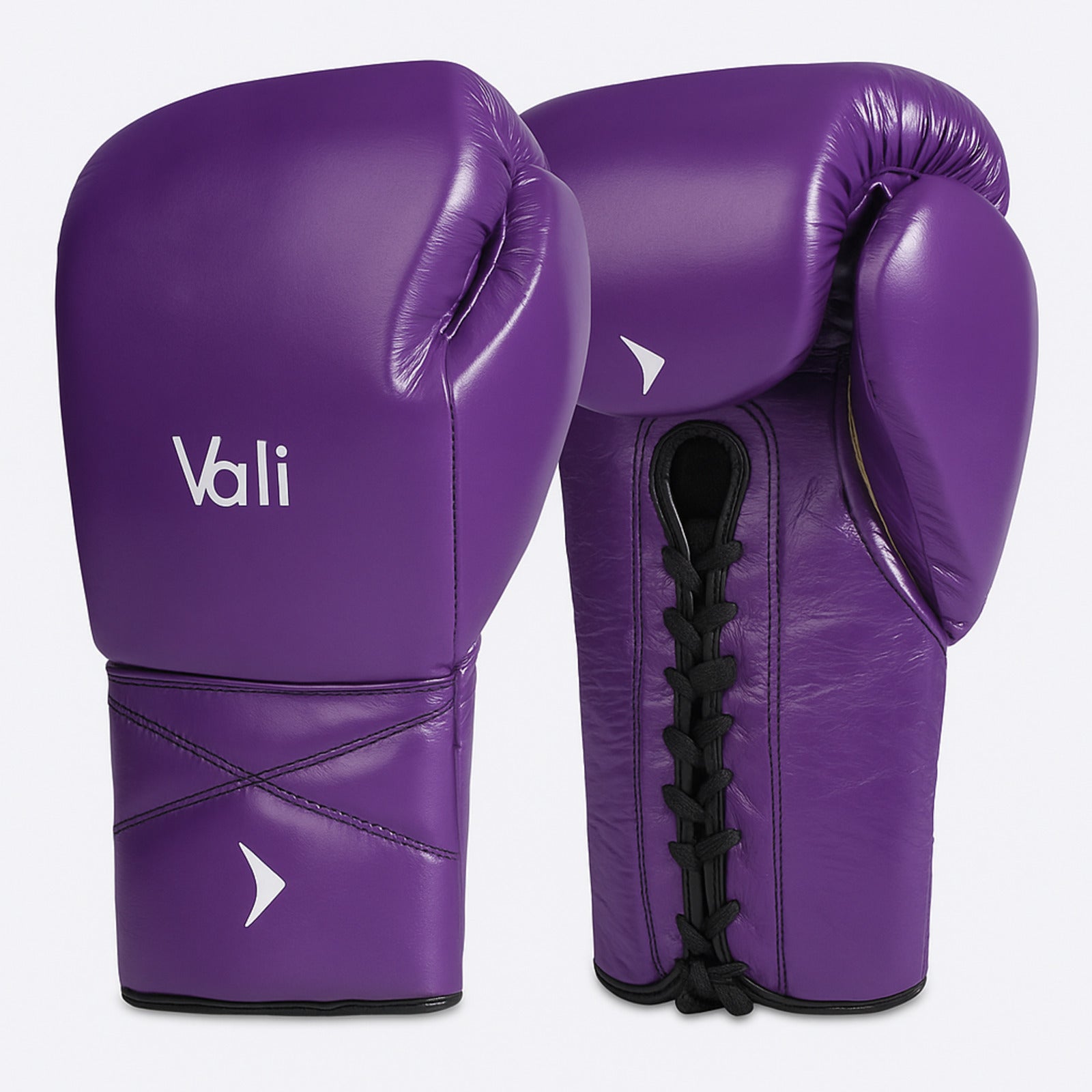 Lancer Leather Lace-Up Boxing Gloves For Pros Purple Front | Vali